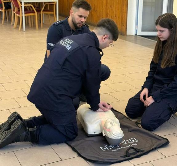 Praktyczne zajęcia z pierwszej pomocy dla młodzieży klas o profilu policyjnym w Objezierzu